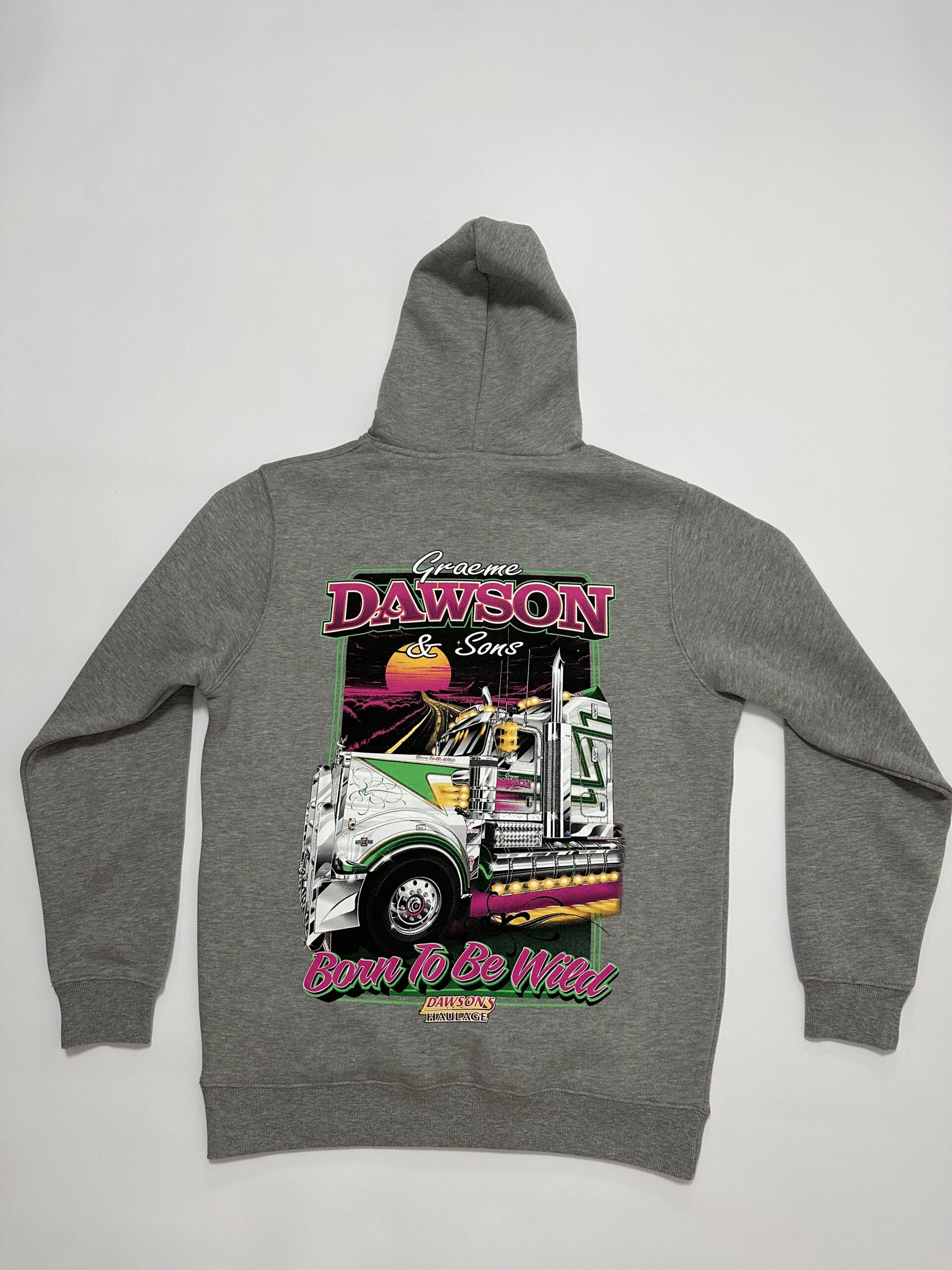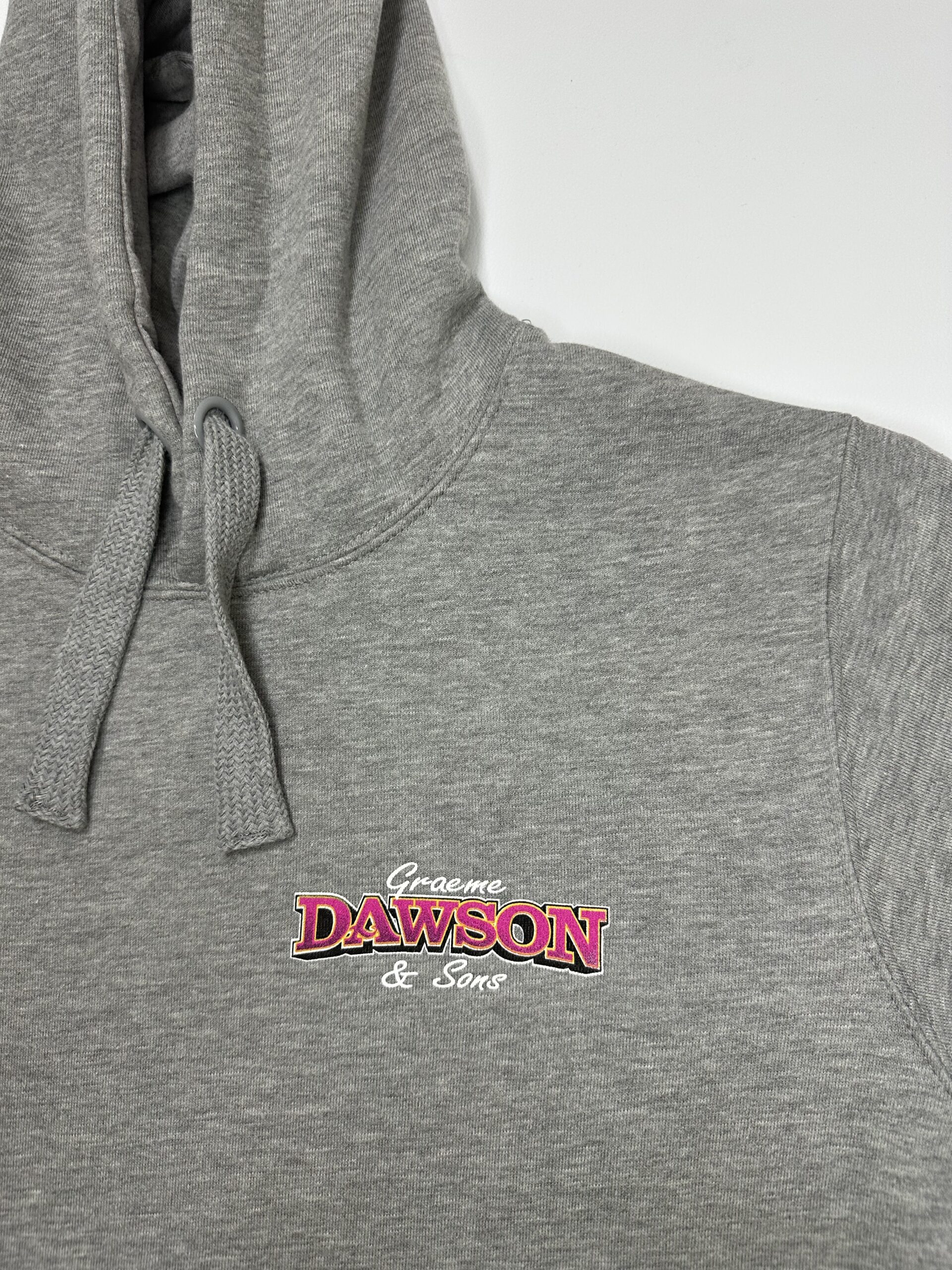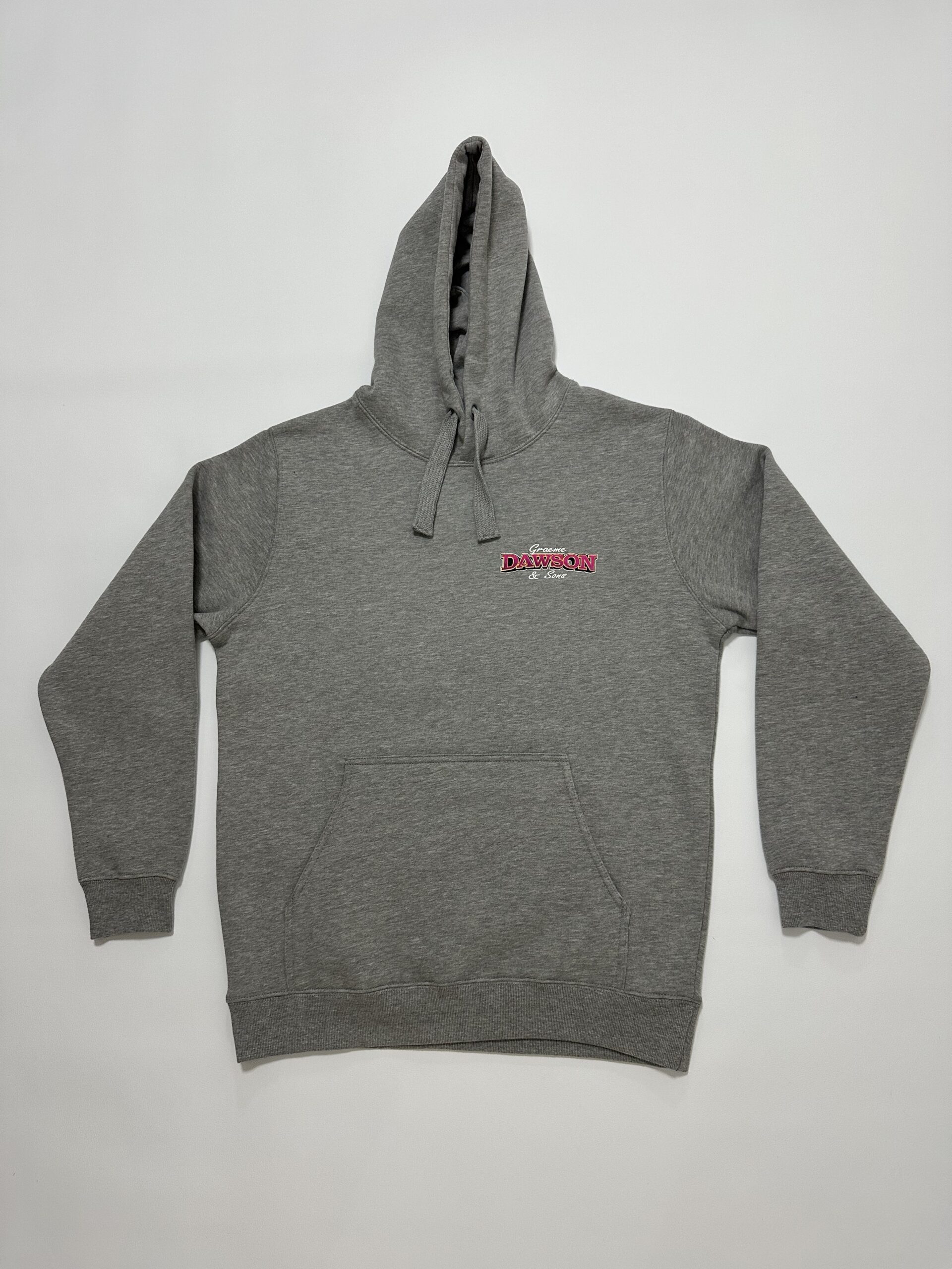 Sharp black hoodie with 'Graeme Dawson & Sons' logo screen printed on the right side of the chest.